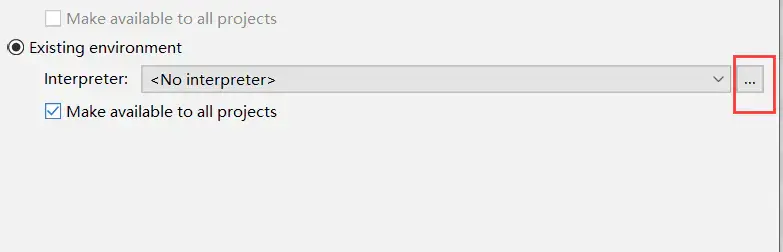 5、之后在弹出的界面中加载本地的虚拟环境,点击右侧的三个点号的按钮,如下图所示。