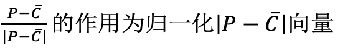 第一次除以 | P- C平均 | ,是因为 | P- C平均 | 是 矢量( P- C平均)的模,除以它就能实现向量归一化。