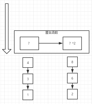 map [? -> ? * 2] [1 3 4] 的意思就是 把 这个匿名函数 作用于右边列表[1 3 4] 里的元素。