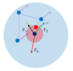 - 通过将三个力(F1 、F2、 F3) 合成 为一个力 F,并结合 简单的欧拉法来 更新 运动的方向 v 和位置 p,这样就能模拟鸟群的运动。