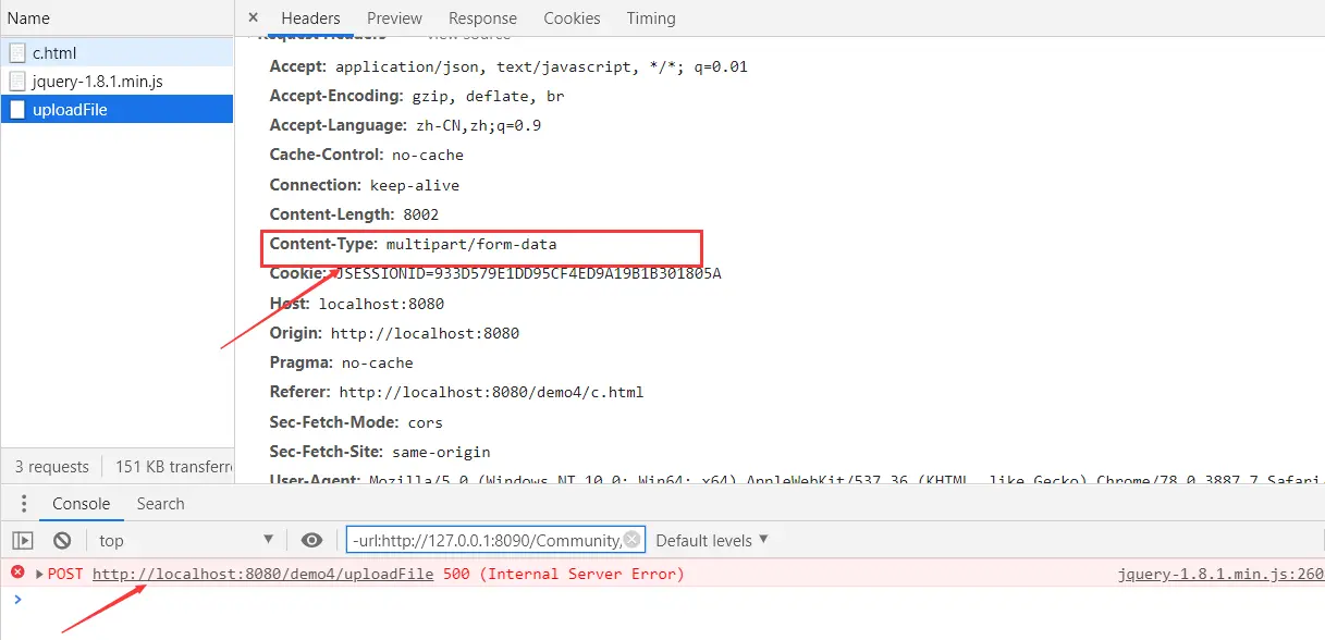 当我们手动指定contentType: 'multipart/form-data',还是不行