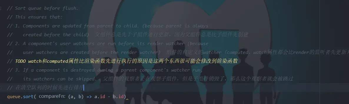 watcher - 在观察者执行队列的时候按id顺序从小到大执行!