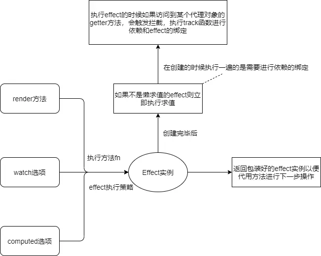 effect,是Watcher的精简版,执行策略是由创建者规定的,针对于三种观察者有三种执行策略,下一部分会进行讲解。阅读代码的时候会产生如下的问题:
