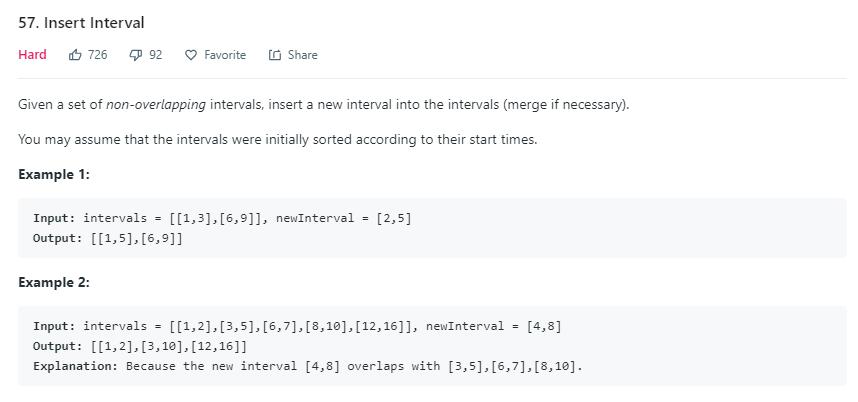对应 56 题的解法二,考虑到它给定的合并的列表是有序的,和解法二是一个思想。只不过这里不能直接从末尾添加,而是根据新节点的 start 来找到它应该在的位置,然后再利用之前的想法就够了。