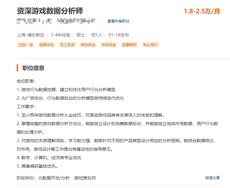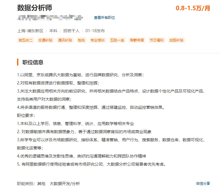 公司信息小编抹掉了,从招聘信息中看到,好像数据分析和 Python 并没与什么实际的联系啊,对了,确实没有什么确切的关系,只能说是在处理大数据的是时候,现在使用 Python 比较方便,如果数据量没那么大的话,使用 Excel 一样能处理的。
