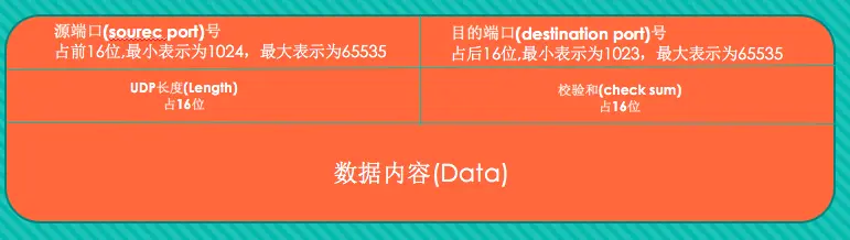 UDP长度(Length):由于UDP首部由4个字段组成,每个字段16bit即2字节。所以UDP长度最小8字节。UDP长度占16bit,最大表示值65535,而UDP报文占8个字节,IP包头占20个字节。所以UDP最大能表示65535-8-20=65507字节。但由于MTU的限制,实际在以太网中UDP最大可以表示1500-8-20=1472字节。