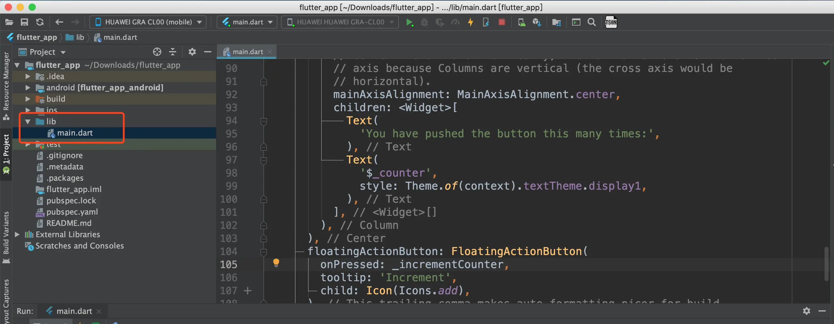 - 保持App程序不退出状态,打开lib\main.dart文件: