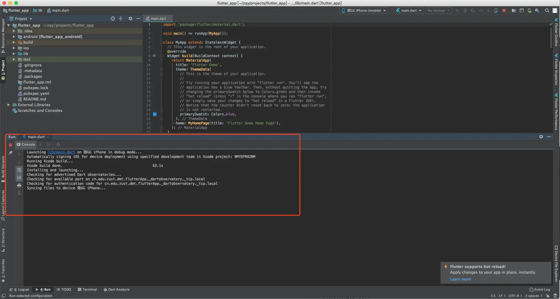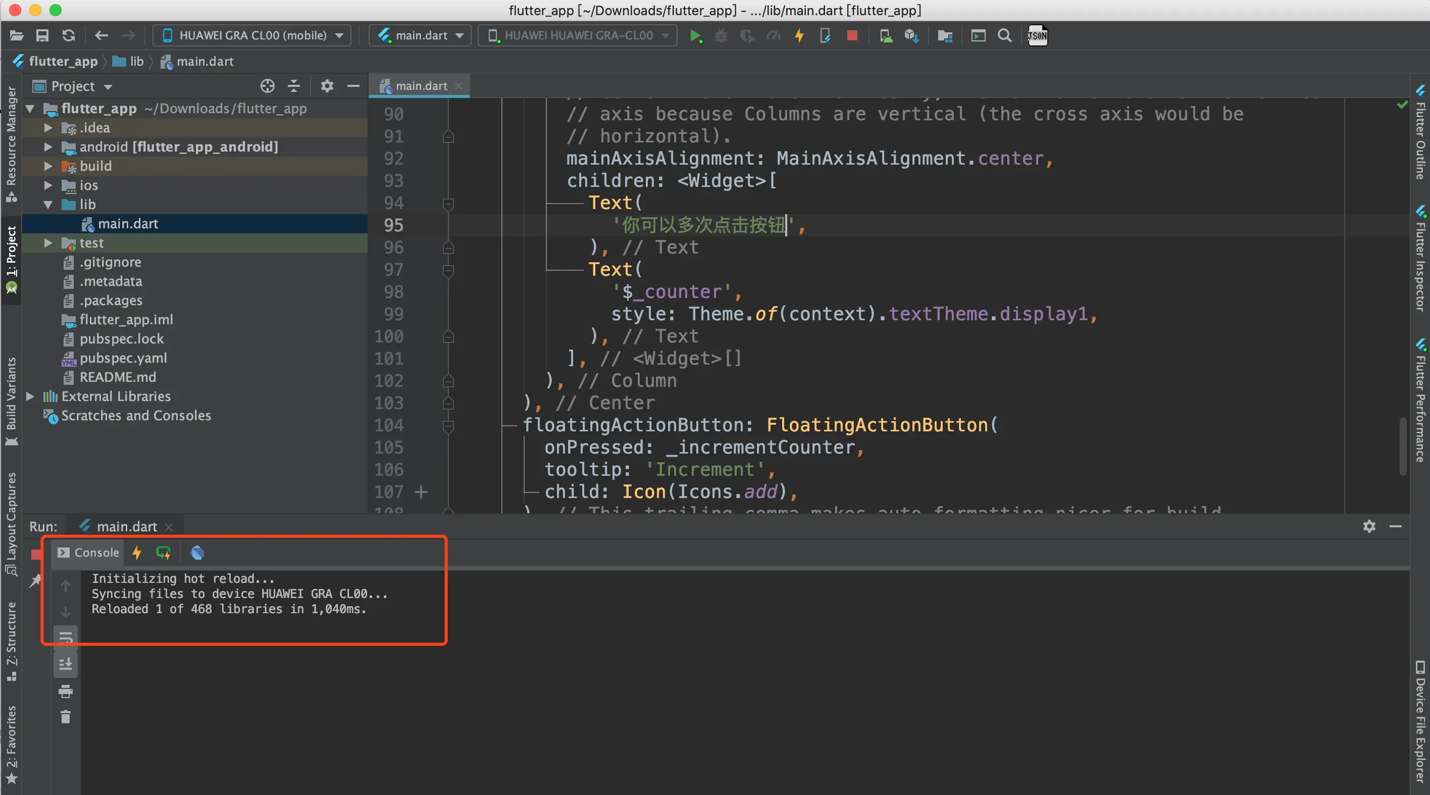 Flutter提供一种不需要应用重新启动,修改代码可以实时生效的热重载功能。