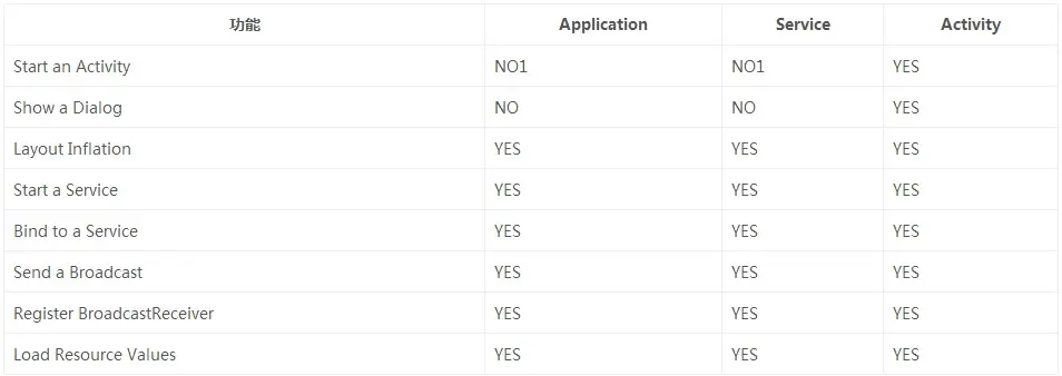 其中: NO1表示 Application 和 Service 可以启动一个 Activity,不过需要创建一个 新的 task 任务队列。而对于 Dialog 而言,只有在 Activity 中才能创建