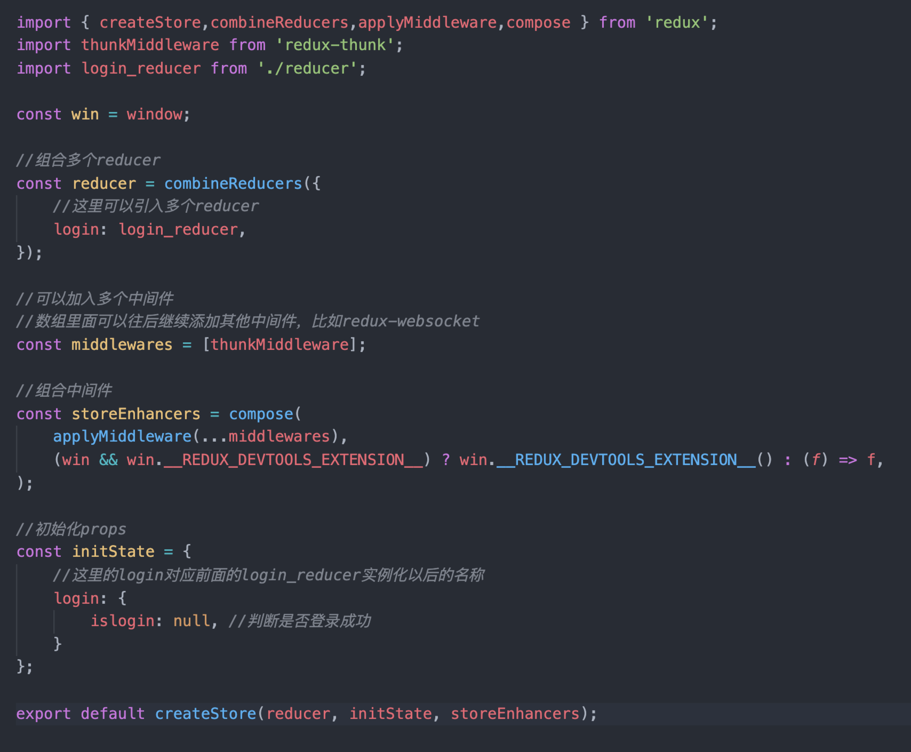 现在再将reducer添加到store树中运行起来,开始编写store.js