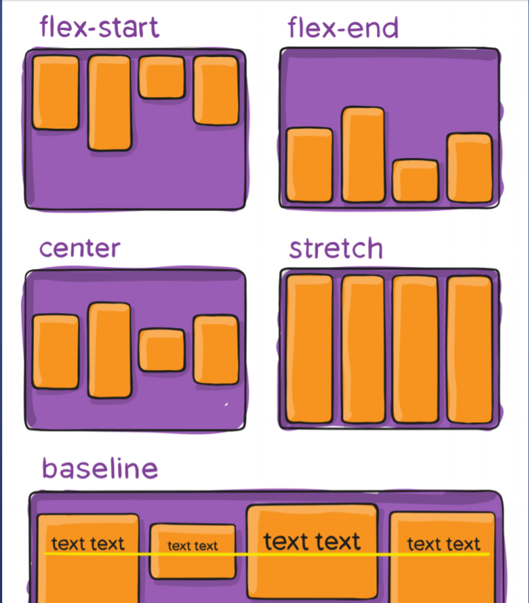 - 当item高度不一样时才有次轴,用align-items