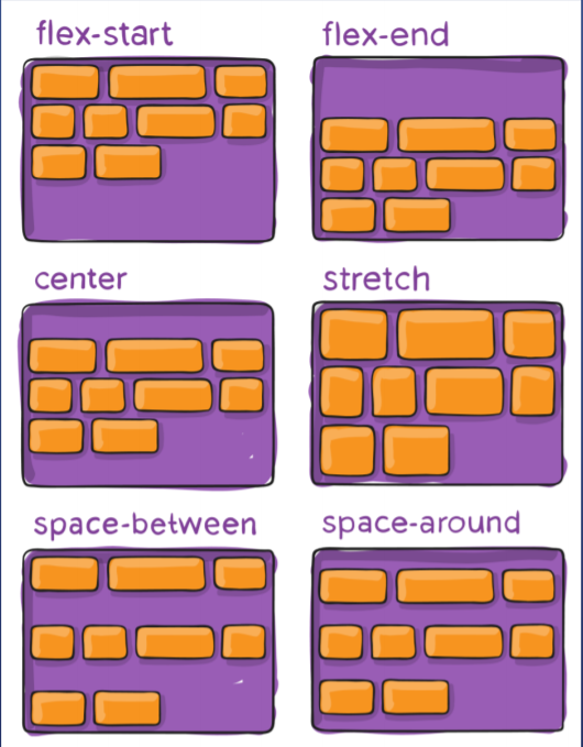 - 主轴的对齐方向默认主轴为横轴除非用flex-direction改变,用justify-content改变,该属性是在里面item未完全利用空间时使用的。justify-content:flex-start|flex-end|center;分别是在主轴开始,主轴结尾,居中。以及不常用的三种