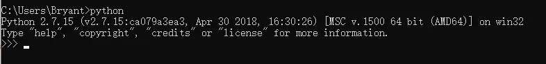 命令行窗口(Win + R)中输入python,看到以下代码即表示下载成功