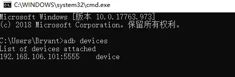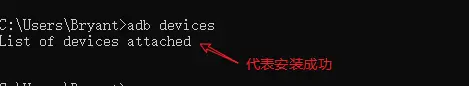 命令行窗口(Win + R)输入adb devices,如果出现以下代码即代表环境安装成功