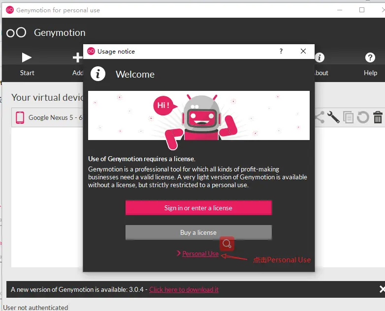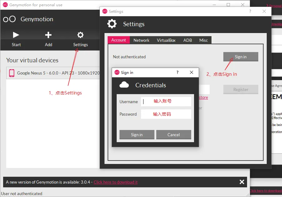 7.3、登录Genymotion