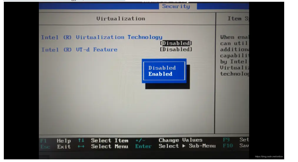 - 找到Intel Virtual Technology项, 调整为 Enabled