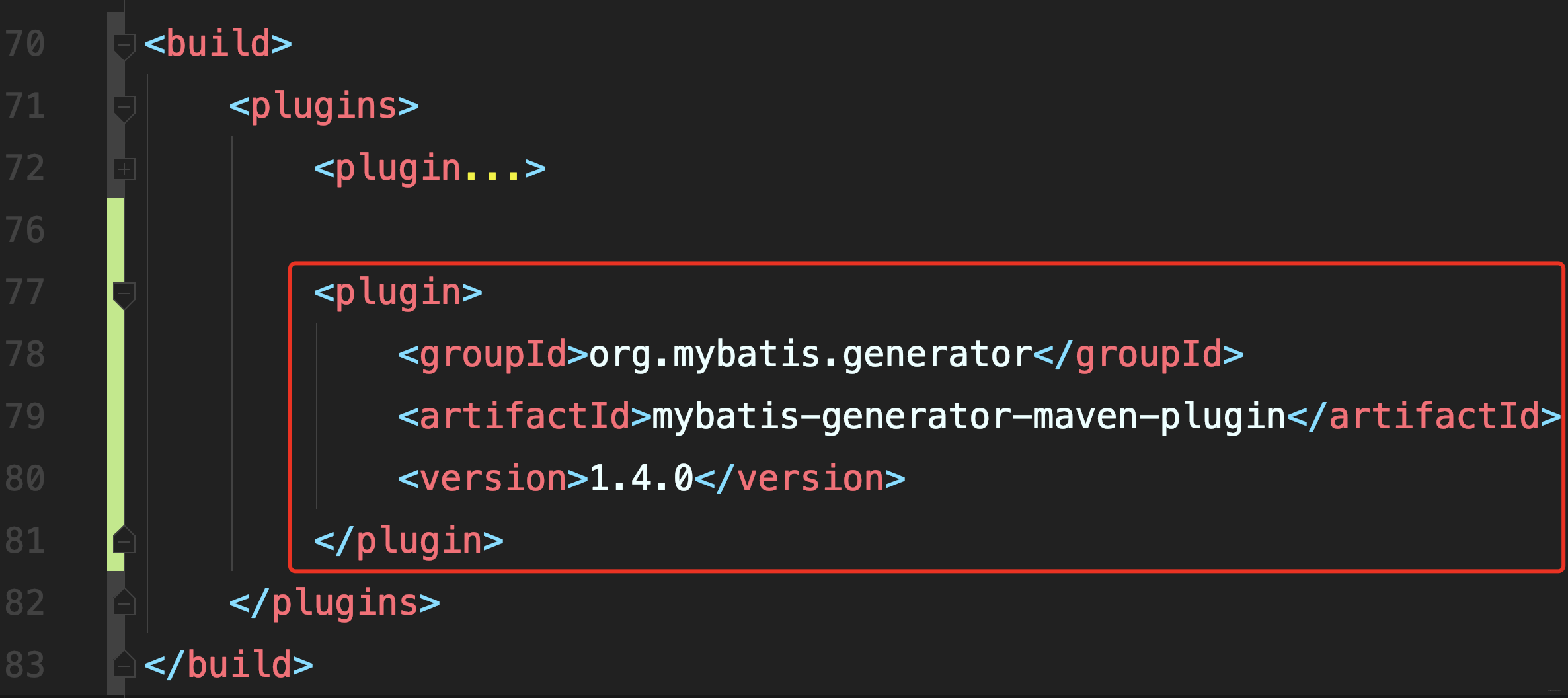 <property name="xmlFormatter" value="org.mybatis.generator.api.dom.DefaultXmlFormatter"/>
