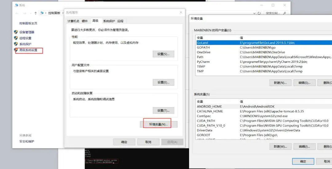 3、我假装各位都会怎么进入环境变量这个面板了哈,不会的都过分了。依次点击我的电脑>高级系统设置>环境变量,如下图所示。