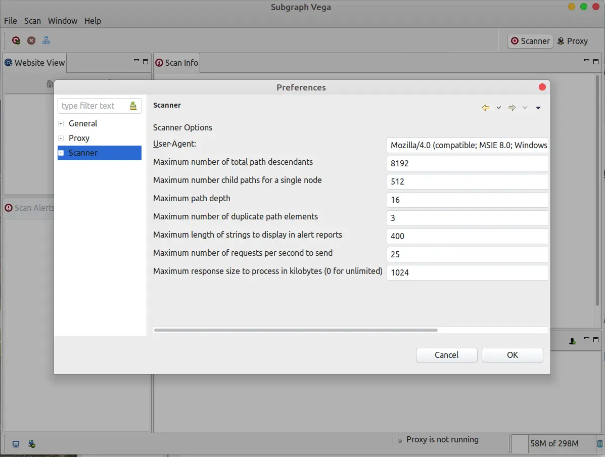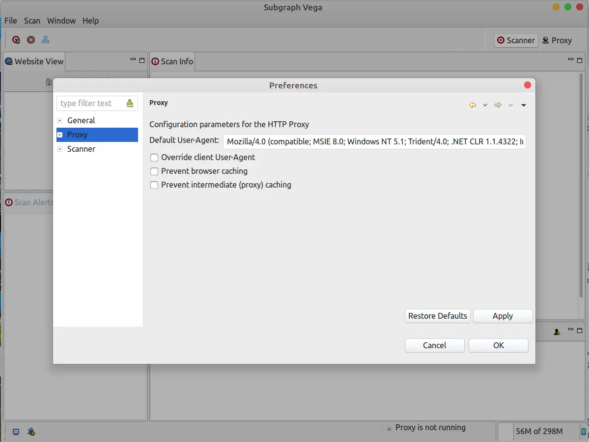 - 在Window上Perferences中的Scaner与Proxy中Useragent设置将其设置为其它浏览器的Useragent,免得触发IDS,Waf防御系统.