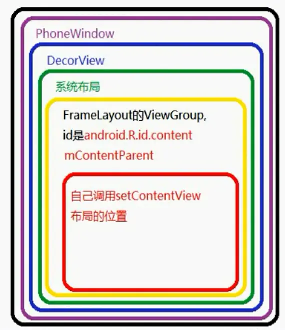 ViewGroup contentParent = (ViewGroup)findViewById(ID_ANDROID_CONTENT);// findViewById 是调用的decorviewview的findviewbyId,所以改view是在decorview中