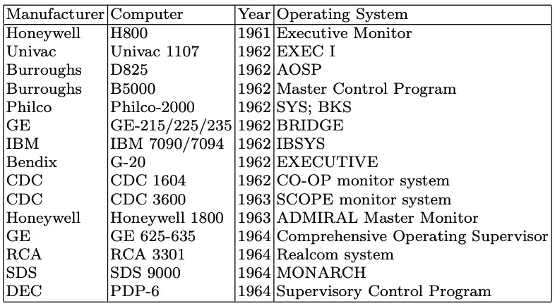 本文内容来自一篇调查综述 What is an Operating System? A historical investigation (1954–1964)。论文引用信息: