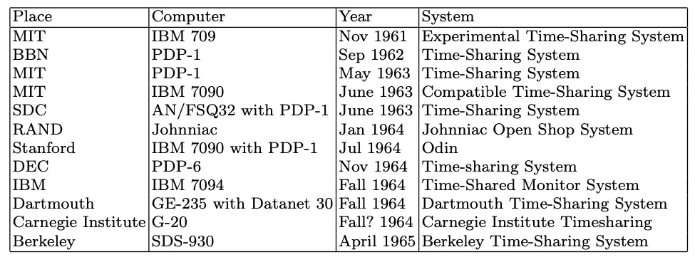 - 试验性的分时系统(experimental time-sharing systems)