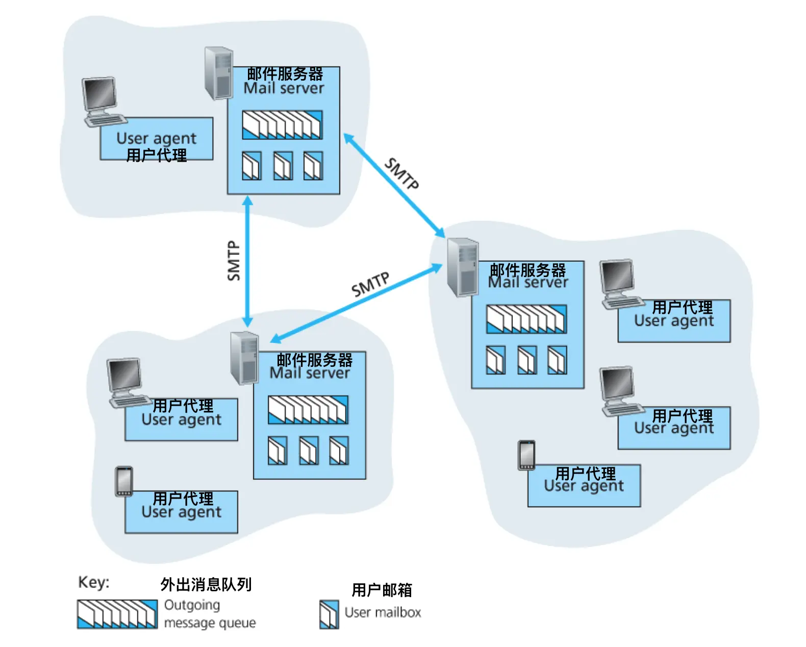 域名系统(Domain Name System, DNS):用于实现网络设备名字到 IP 地址映射的网络服务。文件传输协议(File Transfer Protocol,FTP):用于实现交互式文件传输功能。邮件传送协议(Simple Mail Transfer Protocol, SMTP):用于实现电子邮箱传送功能。超文本传输协议(HyperText Transfer Protocol,HTTP):用于实现 Web 服务。远程登录协议(Telnet):用于实现远程登录功能。