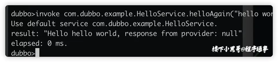 使用 Dubbo Telnet 命令,使用 invoke 命令,可以调用 Dubbo 服务,解决一些生产应急事件。