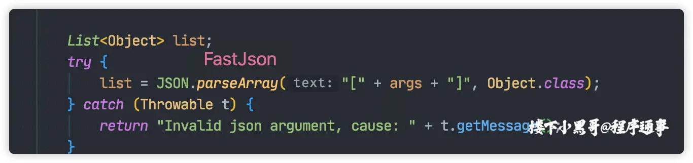 Invoke 命令内部使用 FastJson,将字符串转化为 Json 对象。