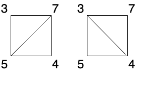 有两种三角剖分,可能得分分别为:3*7*5 + 4*5*7 = 245,或 3*4*5 + 3*4*7 = 144。最低分数为 144。