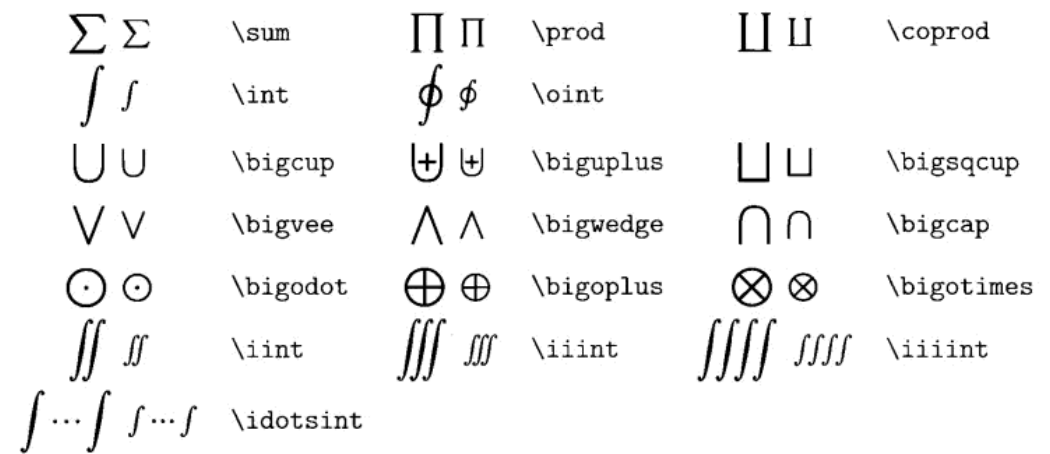 8. 其实也可以手动改变上下标的位置. 在上下标前用\limits命令会使上下标在正上正下方, 而使用\nolimits则使上下标在角上