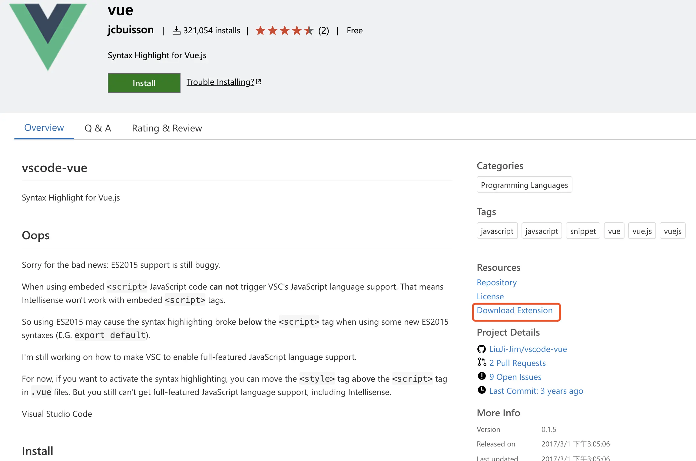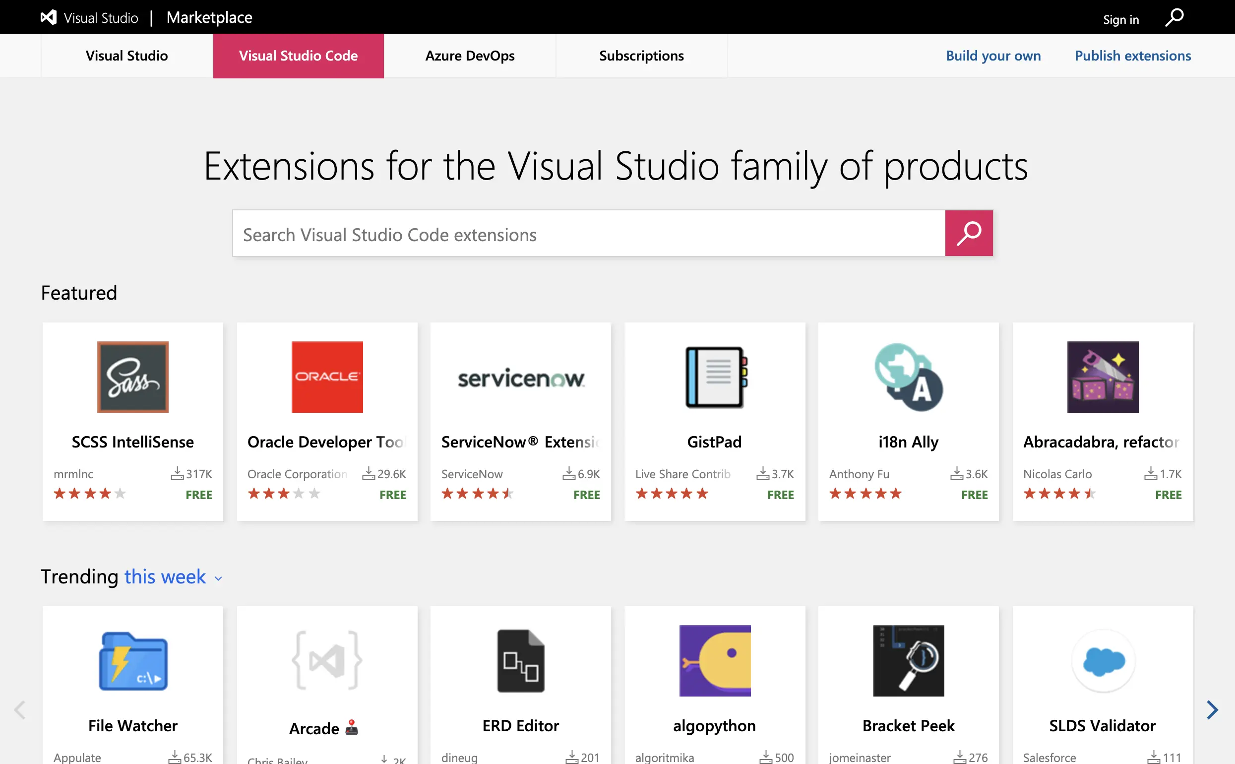 - 打开VSCode插件市场网址 Extensions for the Visual Studio family of product,搜索你想要安装的插件。