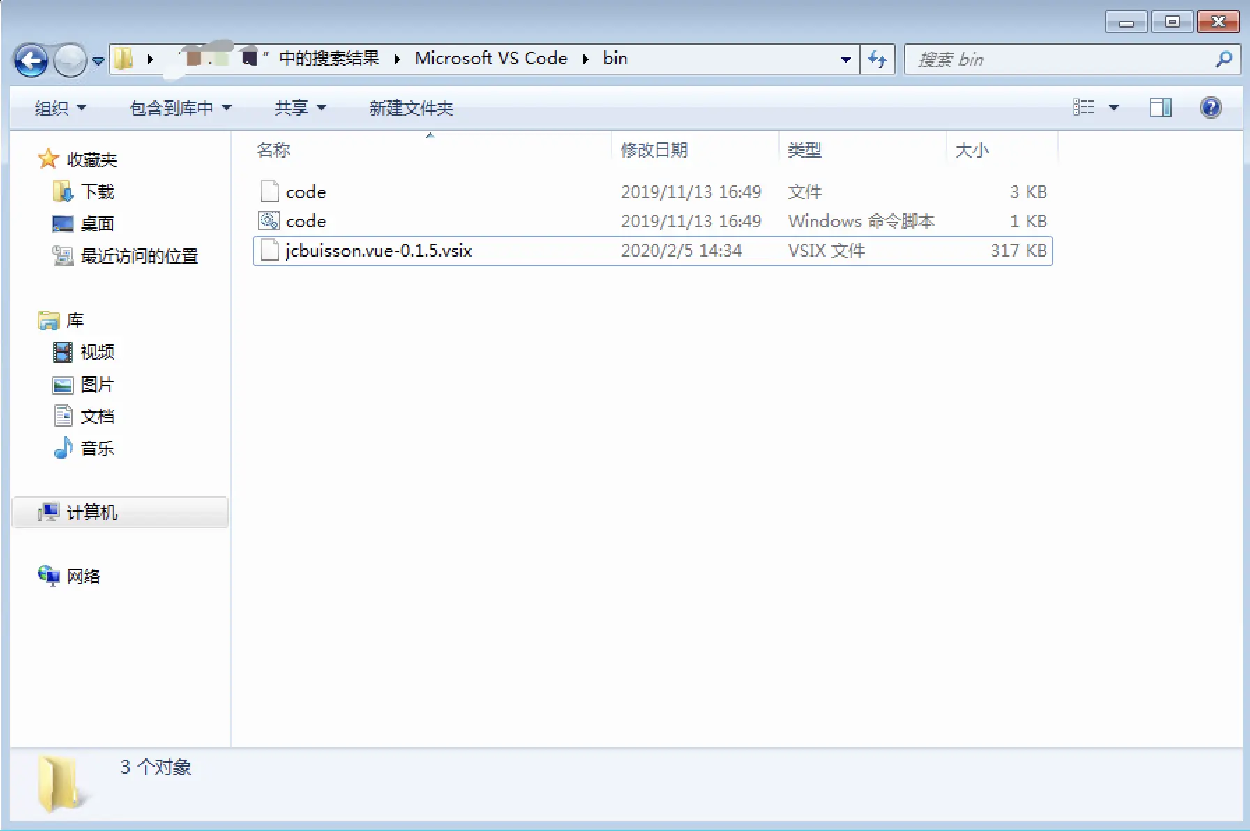 - 把下载的离线安装包拷贝到 VSCode 的安装目录下的 bin 目录,如果不知道VSCode的安装路径,可直接在我的电脑中搜索