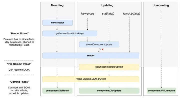 getSnapshotBeforeUpdate(prevProps, prevState) { // 组件更新前触发