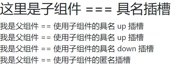 - 父组件中虽然更改了插槽的使用顺序,但是在页面显示的效果还是根据子组件的效果展示的