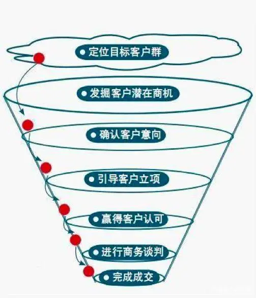 因为从最上面的目标客群到最下面完成成交,每一层都只会比上一层少,因为从最初的接触开始,客户可能就因为这样那样的原因没选择我们的产品。