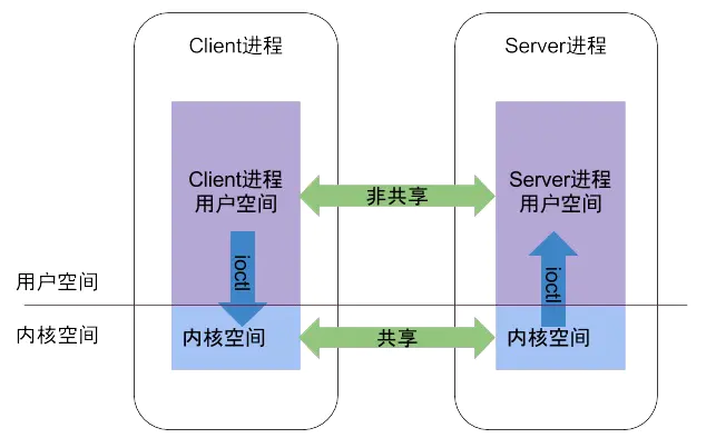 每个Android的进程,只能运行在自己进程所拥有的虚拟地址空间。例如,对应一 个4GB的虚拟地址空间,其中3GB是用户空间,1GB是内核空间。当然内核空间的 大小是可以通过参数配置调整的。对于用户空间,不同进程之间是不能共享的,而 内核空间却是可共享的。Client进程向Server进程通信,恰恰是利用进程间可共享 的内核内存空间来完成底层通信工作的。Client端与Server端进程往往采用ioctl等方 法与内核空间的驱动进行交互。