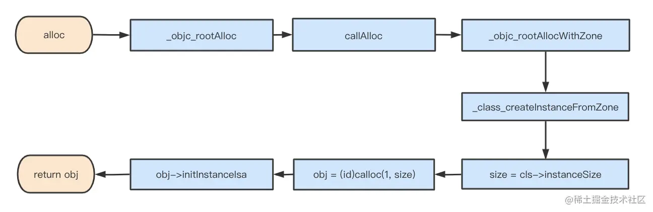 首先抛出一张流程图,oc对象alloc的一般流程如下图所示