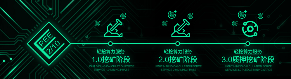 轻挖算力挖矿是PEE公链独创的挖矿体系,他的杠杆增值模型,算力加速模型,关联分支社交模型,三大模型共同铸就了PEE公链轻挖算力挖矿的创新亮点。