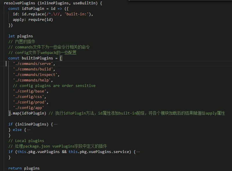 啰嗦了这么多,其实是以build为例,用单线程模式跑了遍vue-cli-service build。从根源上,理解下整个过程发生了什么事情,也便于写Service插件(如有可能)。如果只想看webpack的默认配置源码,只须关注config文件下的几个模块。