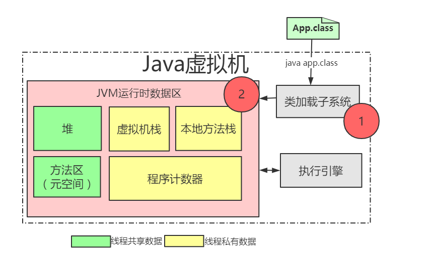 Java内存结构分为三大块,1和2是线程共享的,我们需要理解这3块的含义和作用,基本上现代语言都是数据程序在内存中分离的,数据程序合并的在一些教学书本上有体现,比如8位,10位等处理器的汇编编程,程序简单,空间有限,所以不需要数据和程序分类,对于jvm,数据就是在1中,程序在3中执行,把类信息放在2上 --- "算法+数据结构=程序"
