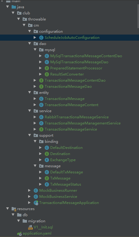 spring-boot-starter-jdbc、mysql-connector-java和spring-boot-starter-aop是MySQL事务相关,而spring-boot-starter-amqp是RabbitMQ客户端的封装,redisson主要使用其分布式锁,用于补偿定时任务的加锁执行(以防止服务多个节点并发执行补偿推送)。