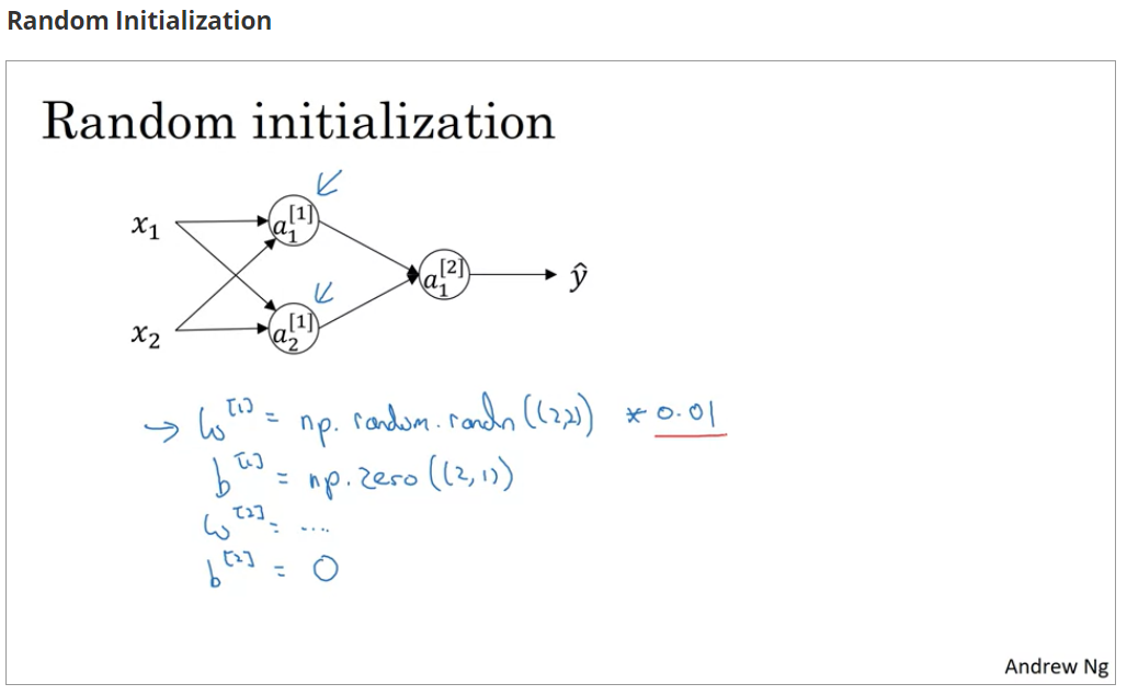 的值初始化为0是可行的,但在神经网络中,将所有值初始化为0就会出现**对称化(symmetry)**的情况,其实不仅是0,将同一层的