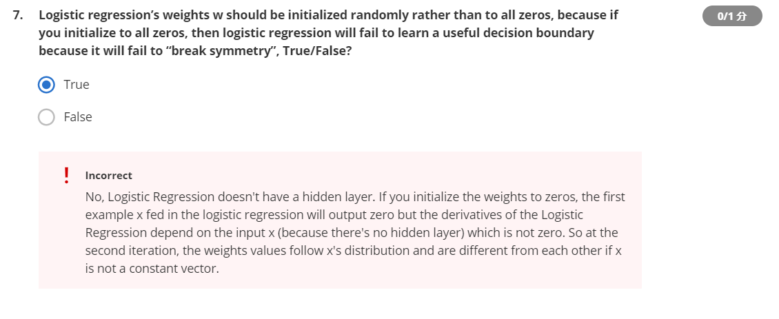 逻辑斯蒂回归的全0初始化