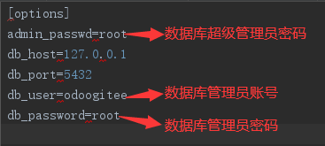 在 odoo源码/setup/odoo.conf中添加odoo配置,内容如下: