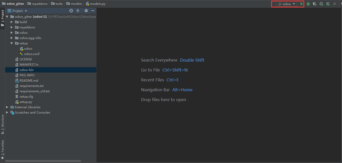 将odoo-bin文件放在odoo源码下,如果没有odoo-bin文件,可以将odoo源码下的一个odoo.py文件复制并更名为odoo-bin;