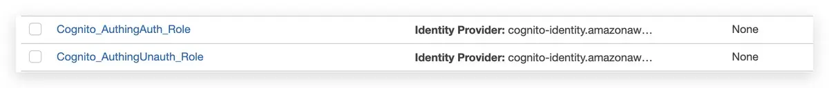 例如,新建 Cognito Identity Pool 的时候,会默认创建两个 role: