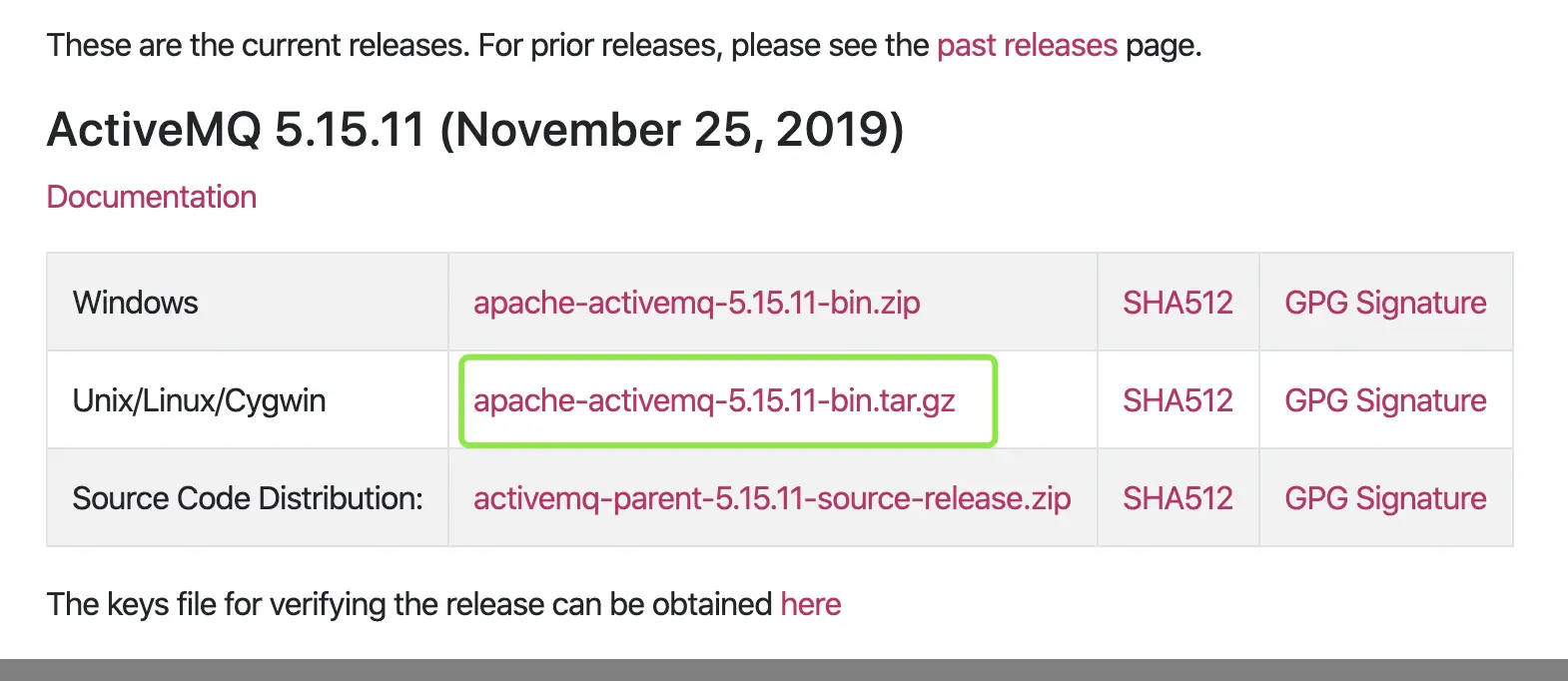 - 去ActiveMQ官网下载Linux下的ActiveMQ的安装包。下载地址