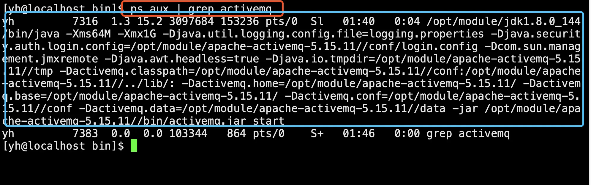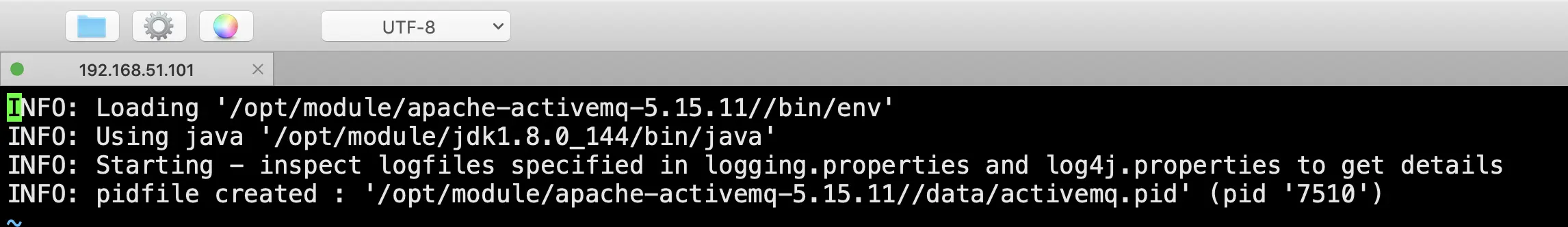 ./activemq start > /opt/module/apache-activemq-5.15.11/myrunmq.log命令以带日志的方式启动ActiveMQ,这种启动方式会将启动时的提示放入myrunmq.log文件中。我们可以vim查看该文件。