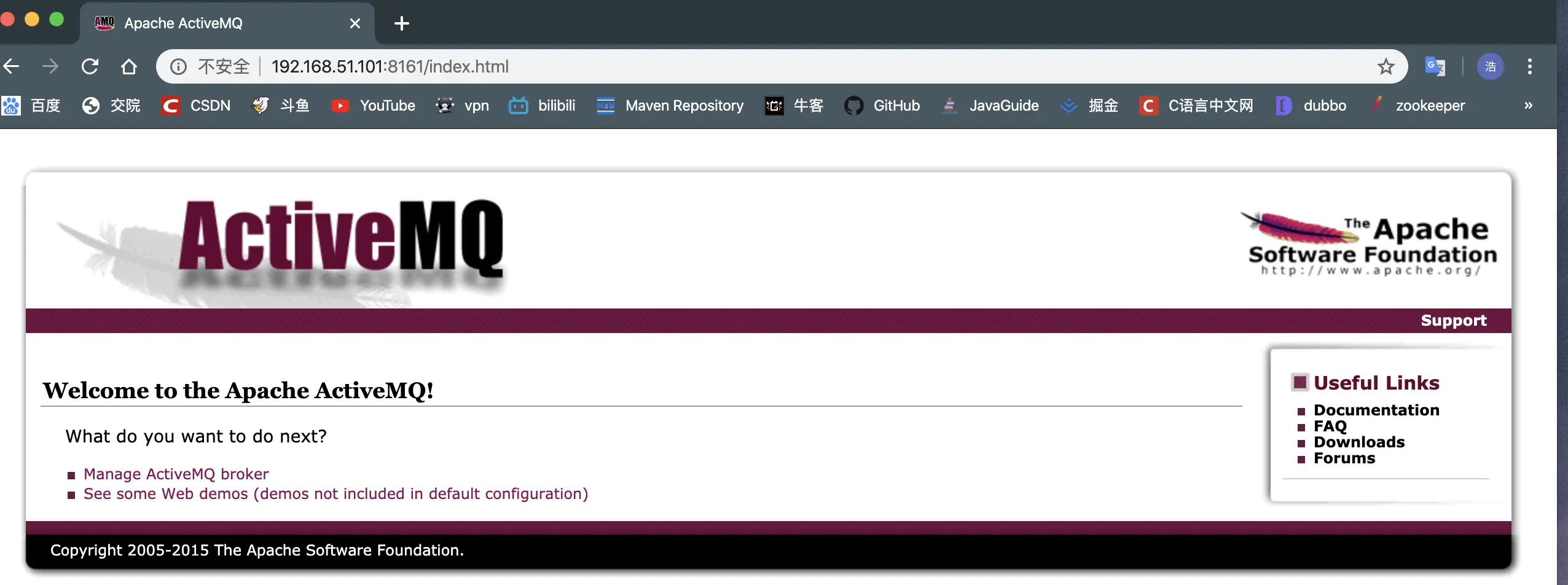 ActiveMQ的后台端口为61616,前台端口为6181,浏览器输入